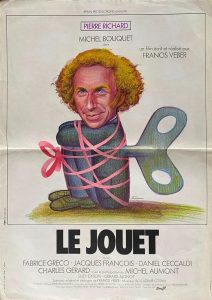 (…) Pierre Richard também foi, acima de tudo, diretor (sete longas realizados entre 1970 e 1997), colocando em cena seu personagem, utilizando com propriedade o plano geral, como as entradas e saídas de cena, e denunciando, por meio da comédia, algumas características marcantes da sociedade de consumo da época: a publicidade e a televisão em Le Distrait e Les Malheurs d’Alfred, e os comerciantes de armas no violento Je sais rien mais je dirai tout. Todos esses universos são criticados através do riso, em conflito permanente com o mundo de seus personagens sonhadores e românticos que parecem viver em uma bolha. Esse contraste singular será retomado no primeiro longa-metragem ácido de Francis Veber, O Brinquedo, no qual seu François Perrin é manipulado por uma criança solitária e autoritária.